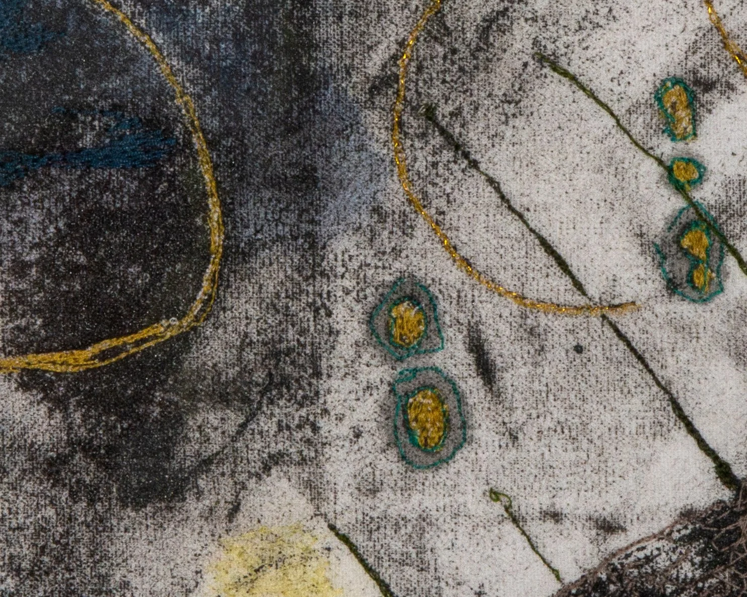 Mixed media (paint/ink/free motion machine stitch) on cotton ground